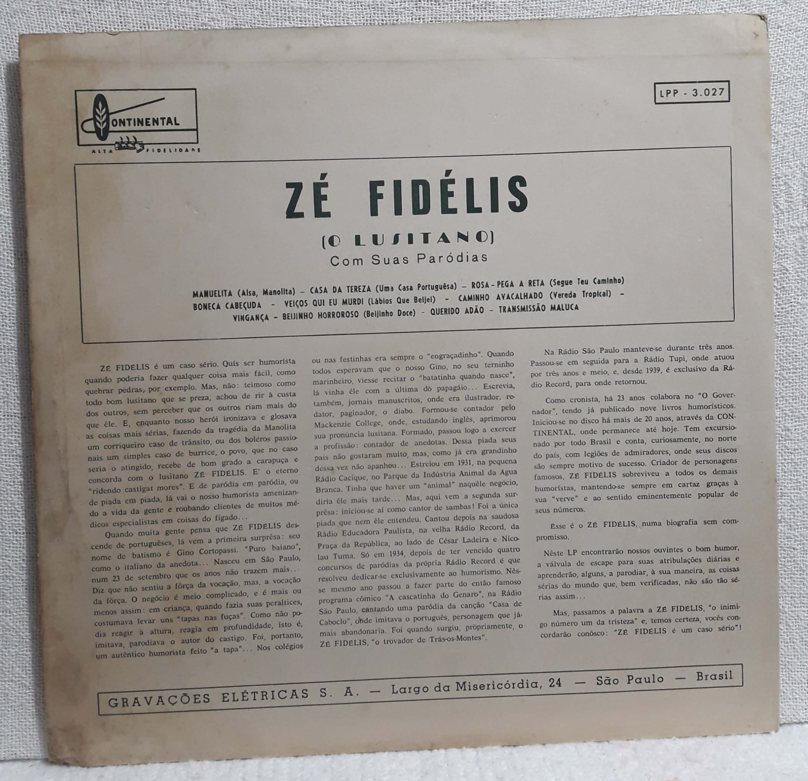 ZE FIDELIS COM SUAS PARODIAS – O LUSITANO – 1958 – CONTINENTAL