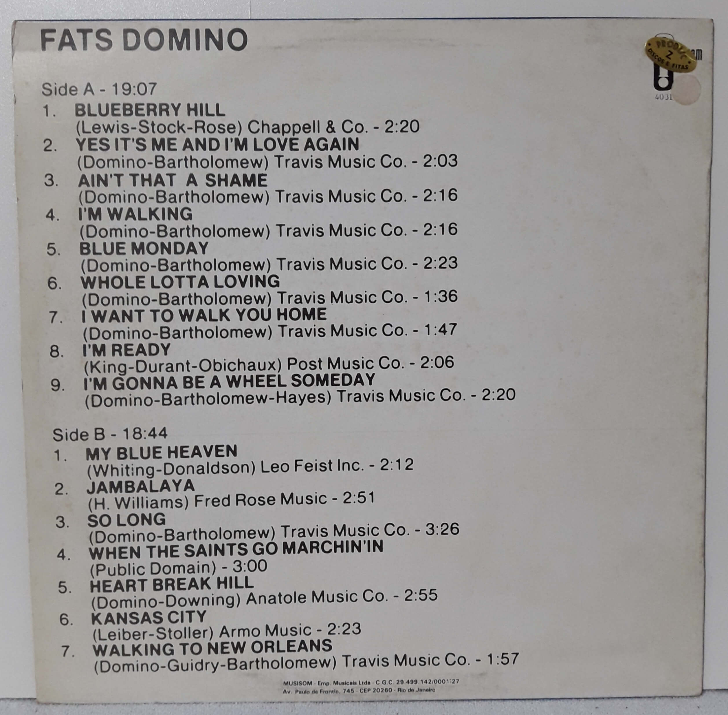 FATS DOMINO – TIMELESS TREASURES -1989 – IMAGE
