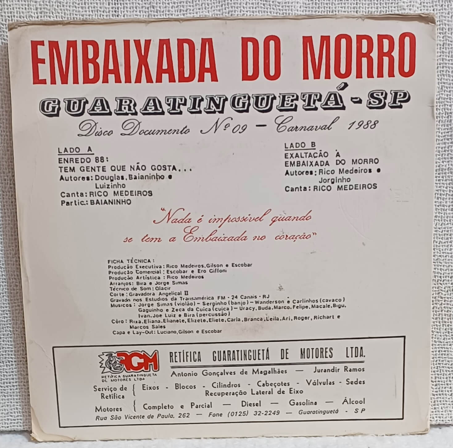 G.R.C.E.S. EMBAIXADA DO SAMBA – TEM GENTE QUE NÃO GOSTA – 1988 – ANGELICAL II
